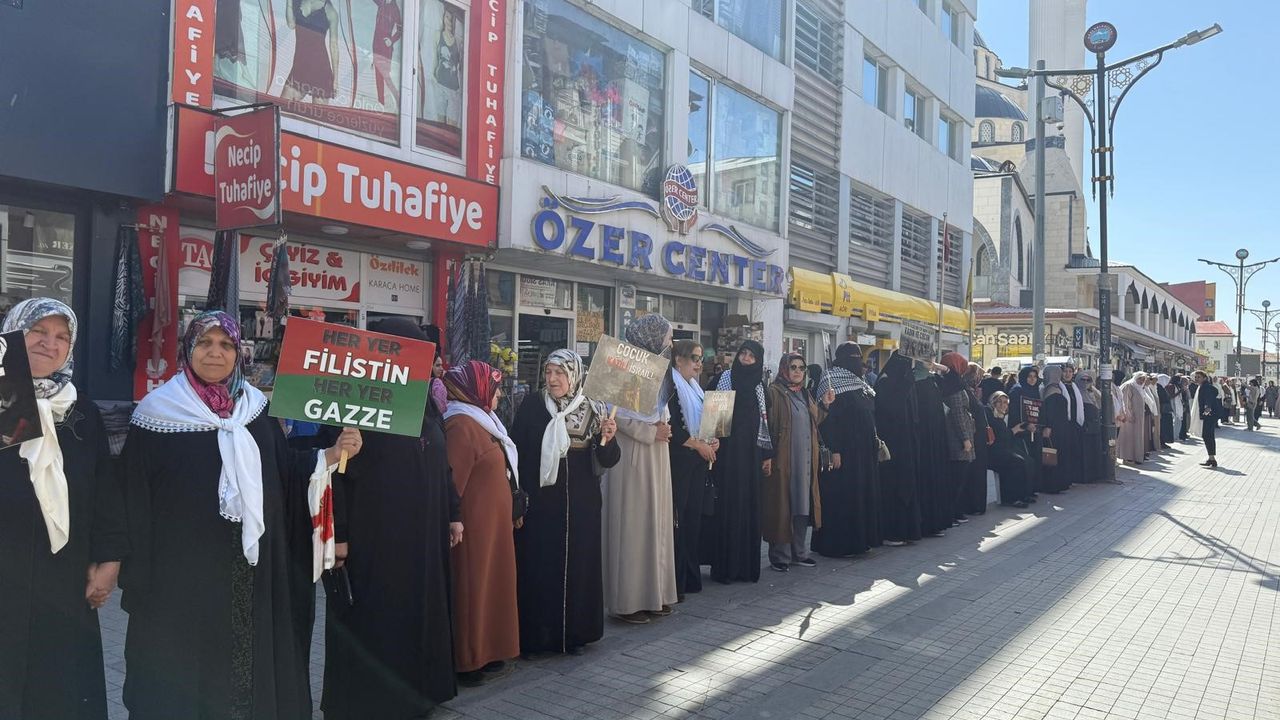 Ağrı’da, Filistin’de yaşanan insanlık dramına dikkati çekmek ve Özgürlük Filosu Koalisyonu’na destek amacıyla kadınların katılımıyla “Gazze İçin Sessiz Çığlık” etkinliği düzenlendi. Cumhuriyet Caddesi’nde bir araya gelen kadınlar, ellerinde Filistin ve Türk bayrakları taşıyarak boyunlarına kefiye bağladı. Katılımcılar, el ele tutuşarak “Gazze İçin Sessiz Çığlık” zinciri oluşturdu.