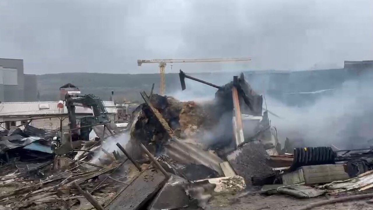 Kocaeli’nin Dilovası ilçesinde sabah saatlerinde çıkan ahır yangınında yüzlerce hayvan telef oldu.