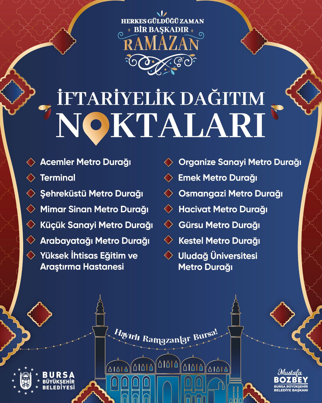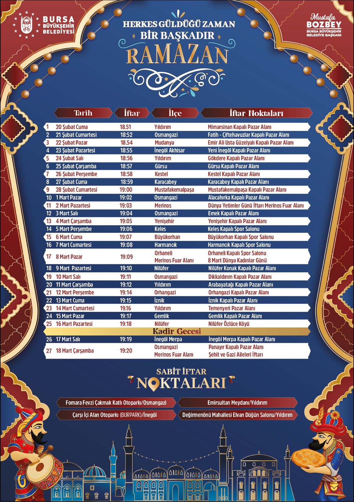 Bursa Büyükşehir Belediyesi, Ramazan ayı kapsamında İnegöl ilçesinde çeşitli noktalarda iftar programları ve tatlı dağıtım organizasyonları düzenleyecek.