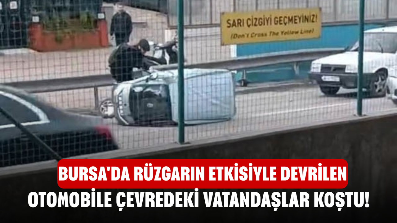 Bursa’da etkili olan şiddetli rüzgar, trafikte tehlikeli anlara neden oldu. Osmangazi ilçesinde meydana gelen olayda, seyir halindeki mini otomobil rüzgarın etkisiyle devrilerek yan yattı.