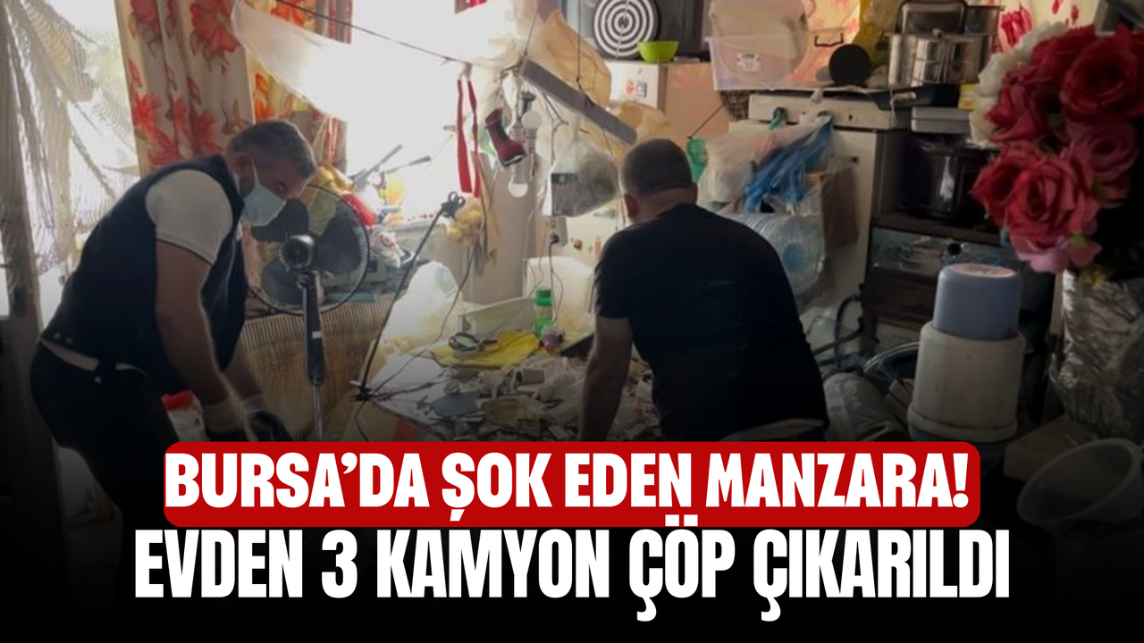 Yıldırım Belediyesi ekipleri evde başlattıkları çalışmada, kapıdan adım atacak yer bırakmayacak şekilde yığılmış çöplerle karşılaştı. Gün boyu süren temizlik operasyonunda tonlarca çöp toplanarak 3 kamyona yüklenip tahliye edildi.