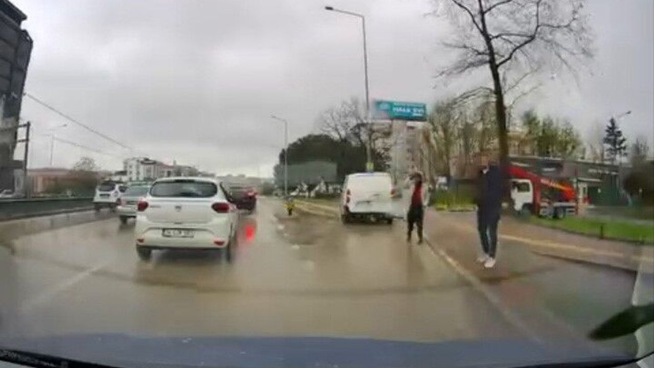 Otomobil sürücüsünün yol vermemesi üzerine taraflar arasında tartışma çıktı. Tartışmanın büyümesi üzerine minibüs sürücüsü, otomobili bir süre takip ederek durdurdu.