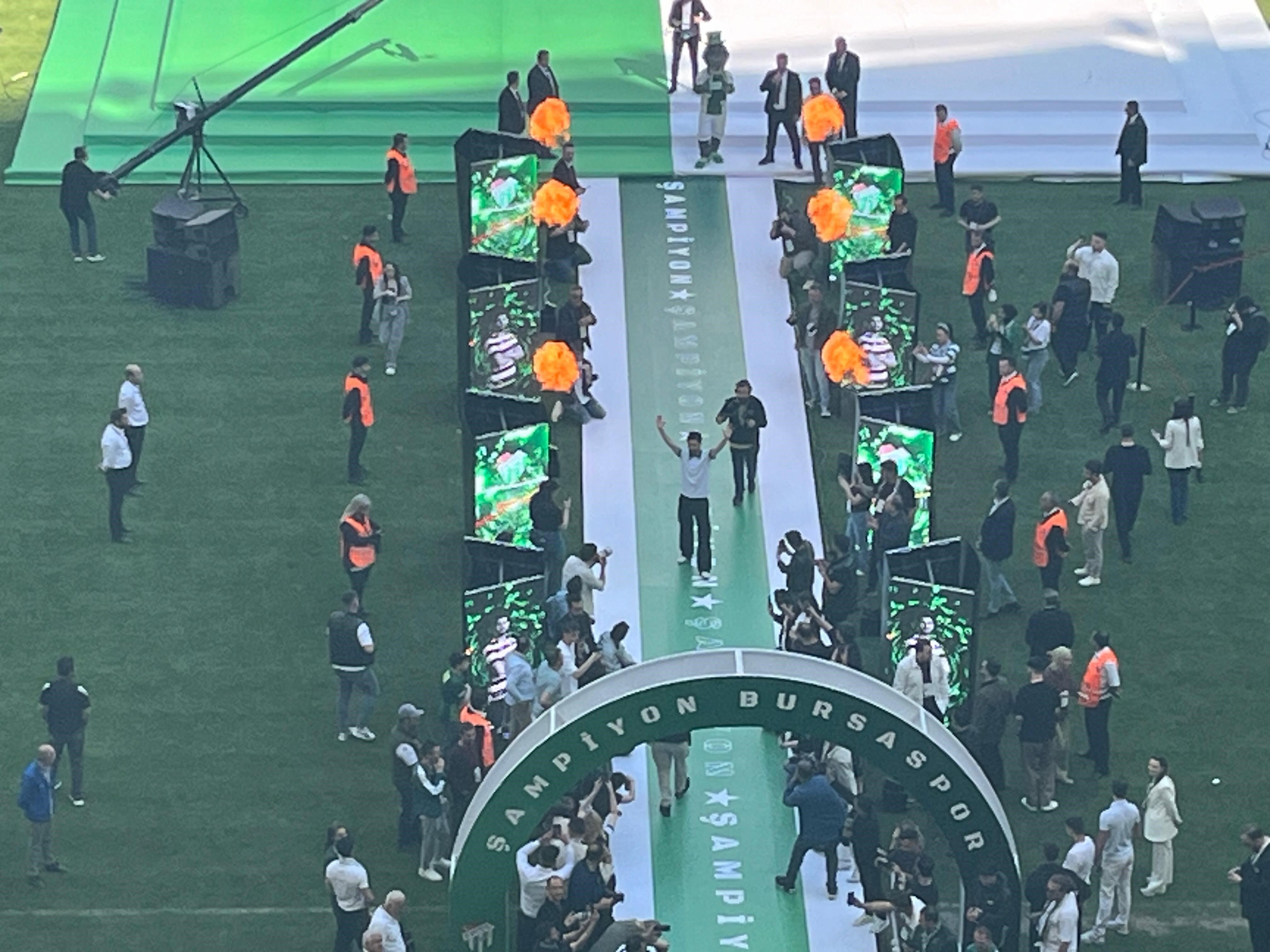 Bursaspor Başkanı Enes Çelik, kupa seremonisinde takımın amigosu Selim Kurtulan’ı sahneye davet etti. Taraftarların tezahüratları eşliğinde Kurtulan da törene katıldı. Türkiye Futbol Federasyonu Başkanı İbrahim Hacıosmanoğlu da törende yer alarak yeşil-beyazlı takımı tebrik etti.