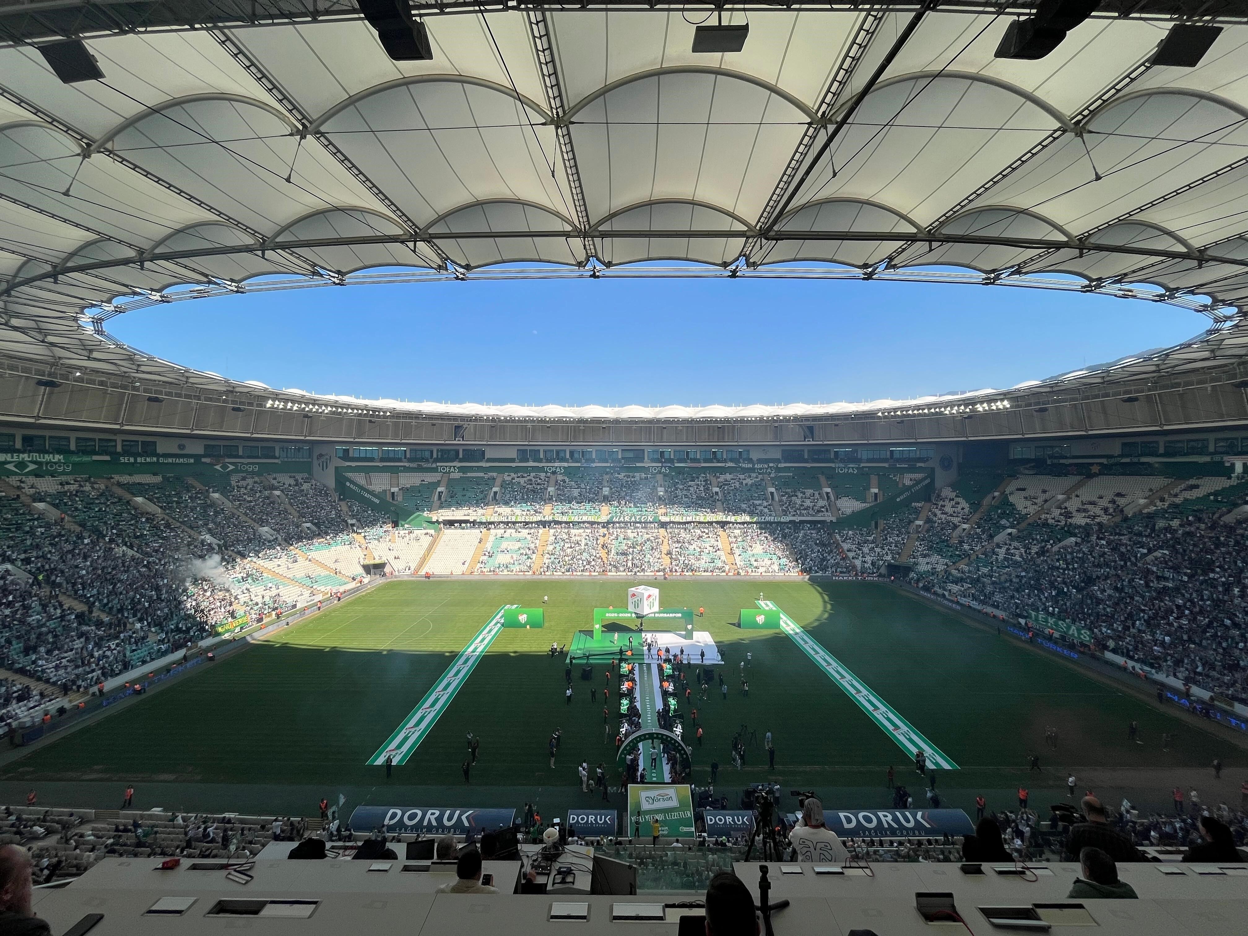 TFF 2. Lig Kırmızı Grup’ta 2025-2026 sezonunu zirvede tamamlayan Bursaspor, şampiyonluk kupasını Atatürk Spor Kompleksi Matlı Stadyumu’nda düzenlenen görkemli törenle kaldırdı. Sabahın erken saatlerinden itibaren stadyum çevresinde toplanan binlerce taraftar, yeşil-beyazlı ekibin başarısını tezahüratlarla kutladı.