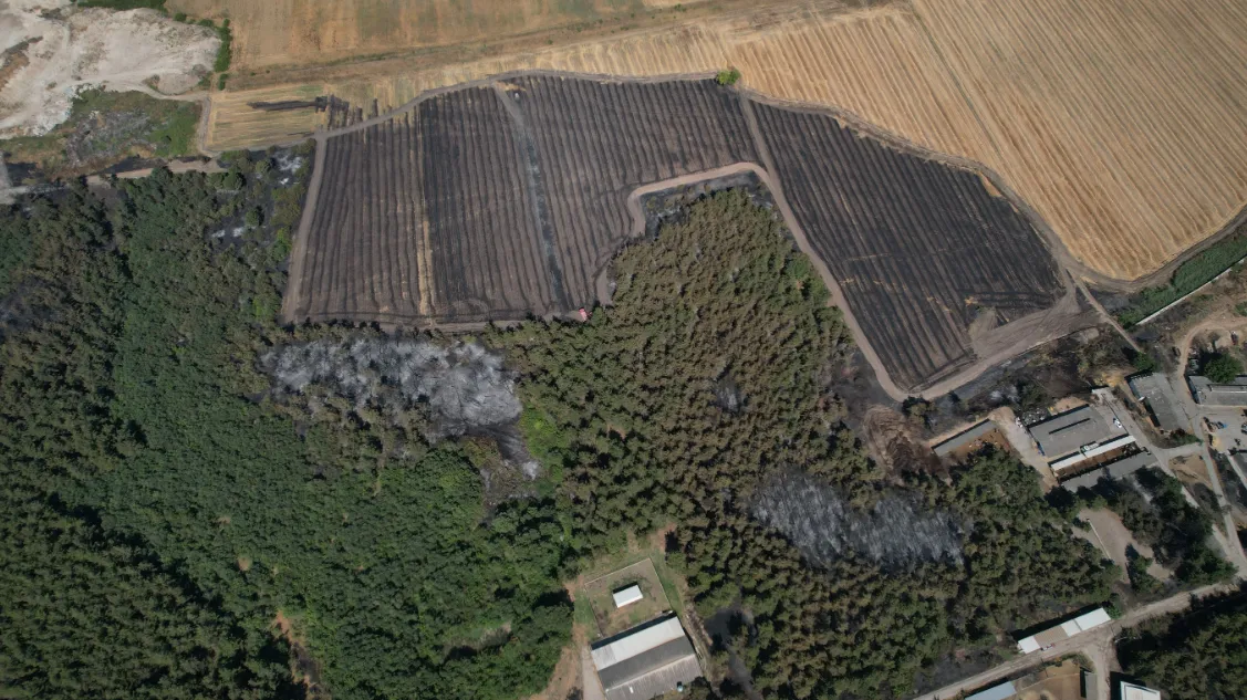 Atçılık bölümünde 2 padok alanı ve bin balya yonca yandı. Yangın nedeniyle çiftlikteki hayvanlar tahliye edildi.