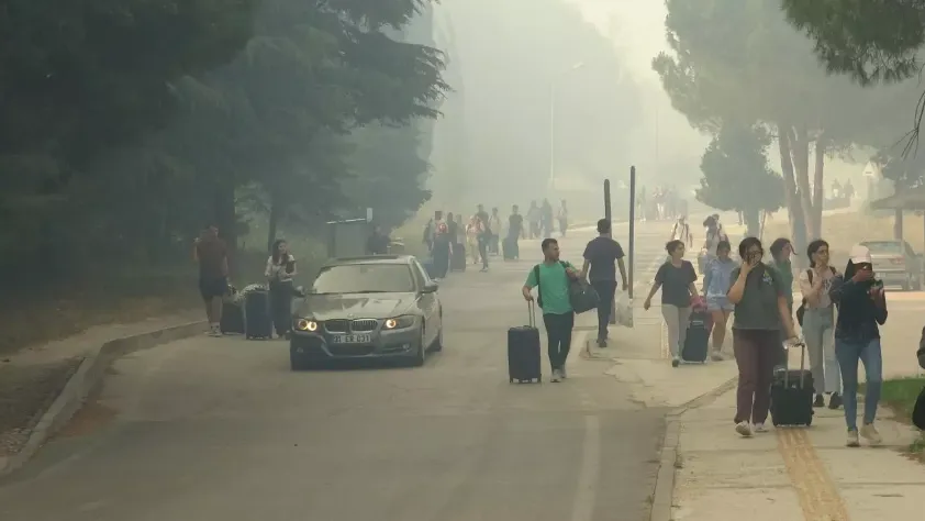 Yangın sırasında yurtlarda bulunan öğrenciler güvenli bölgelere tahliye edildi.