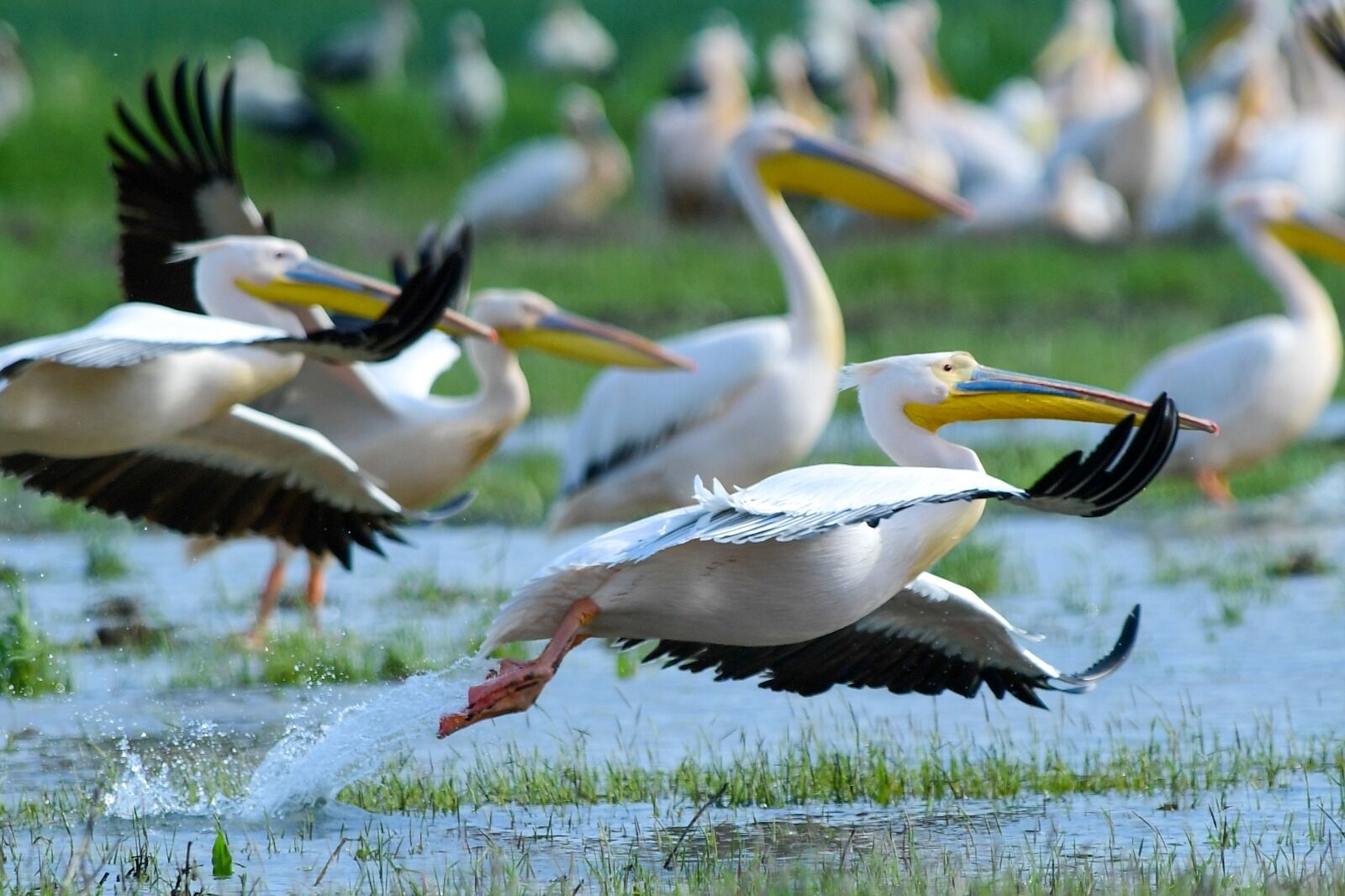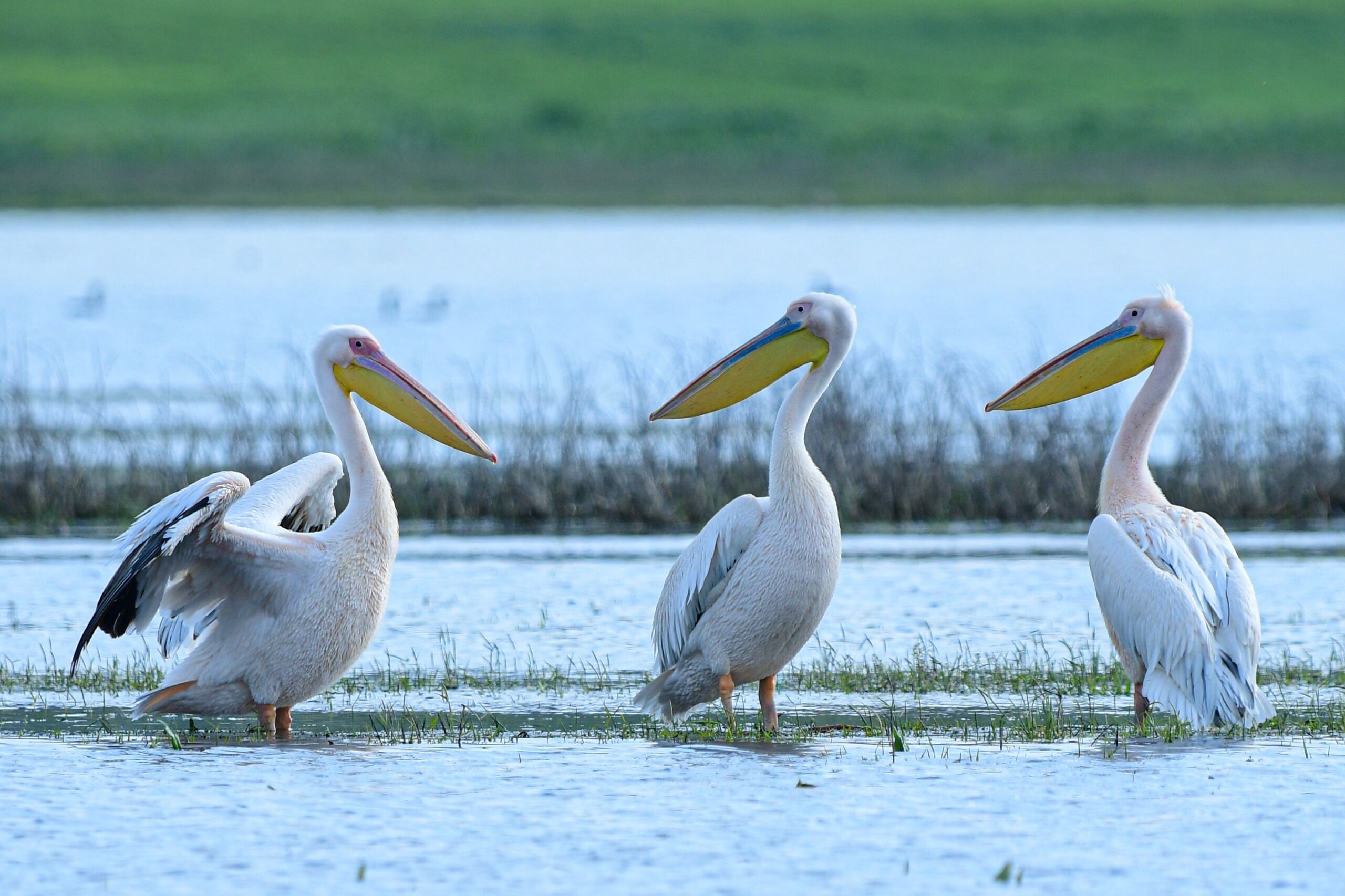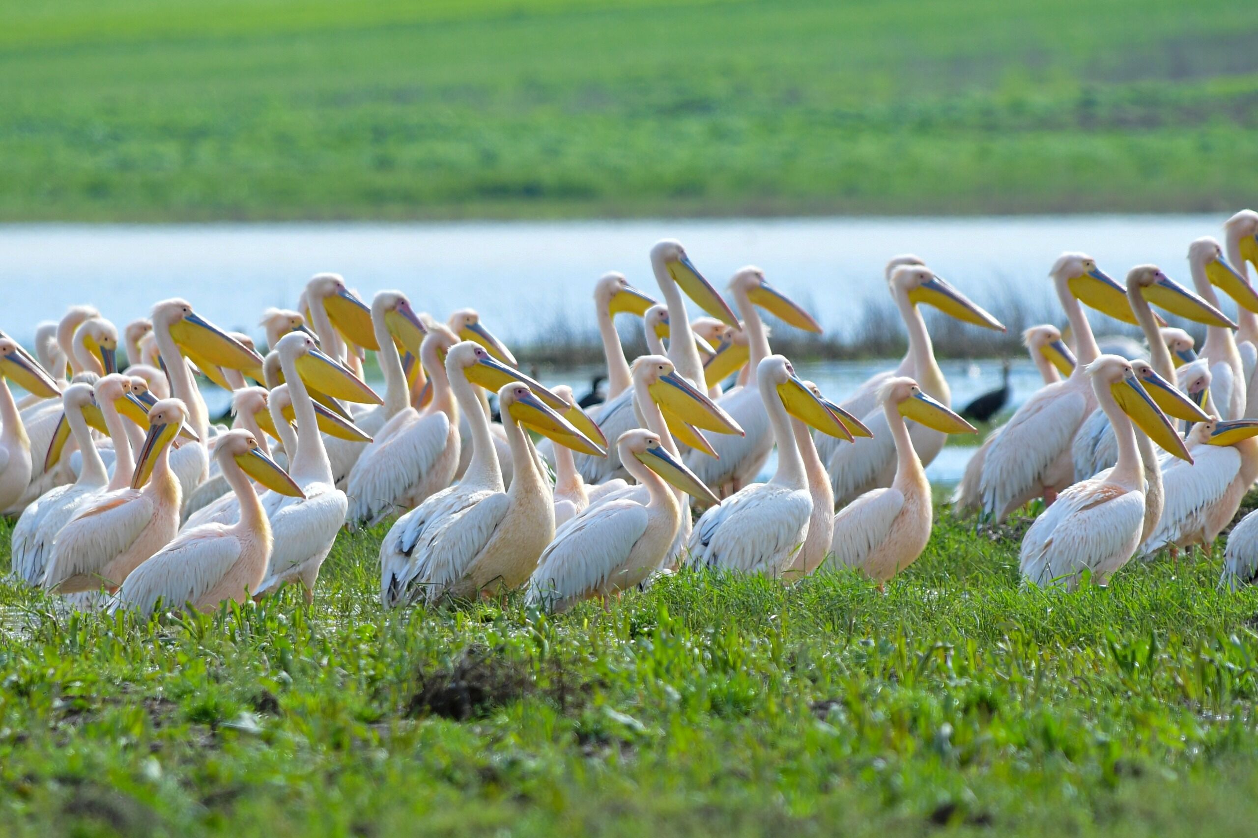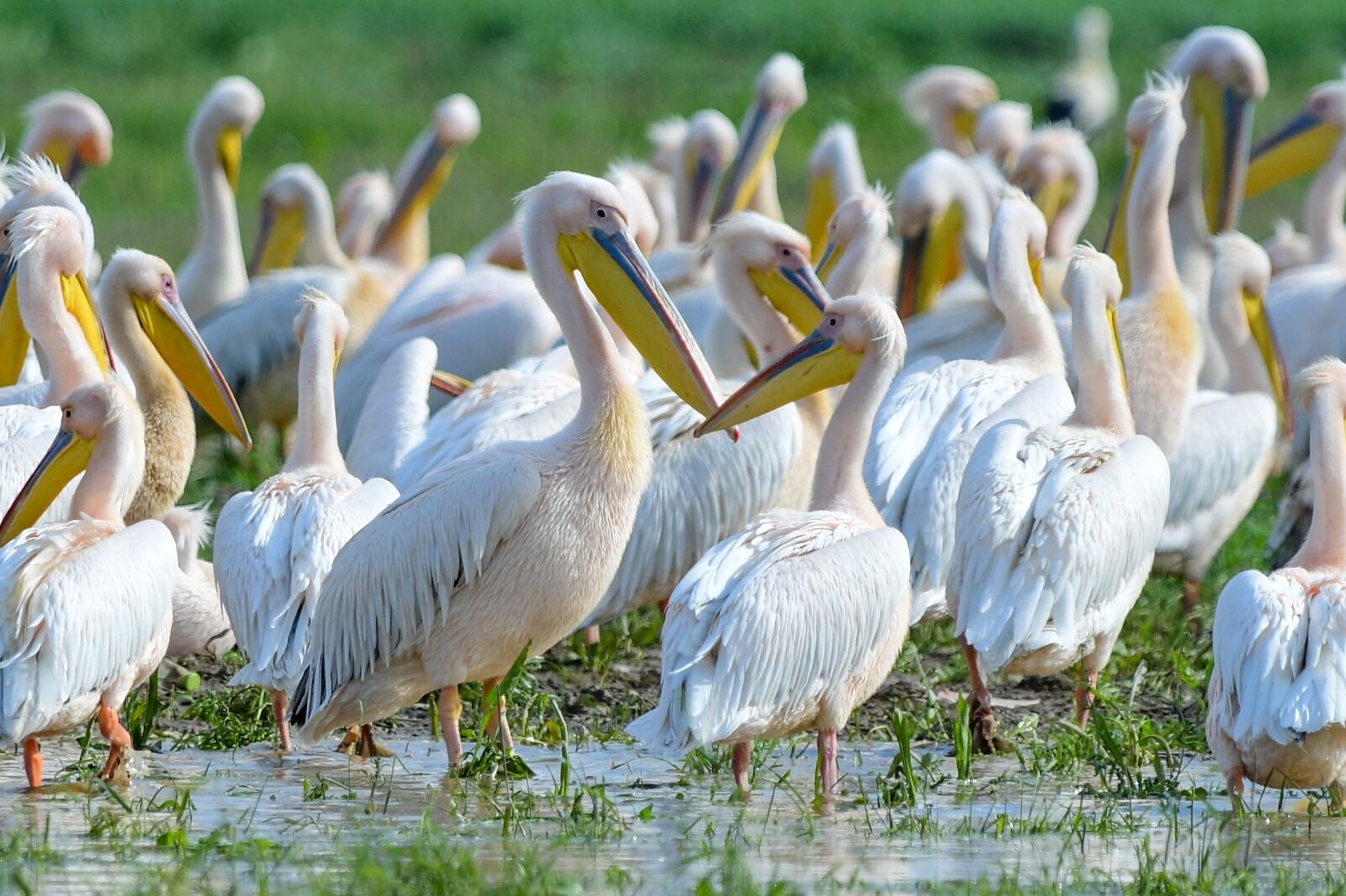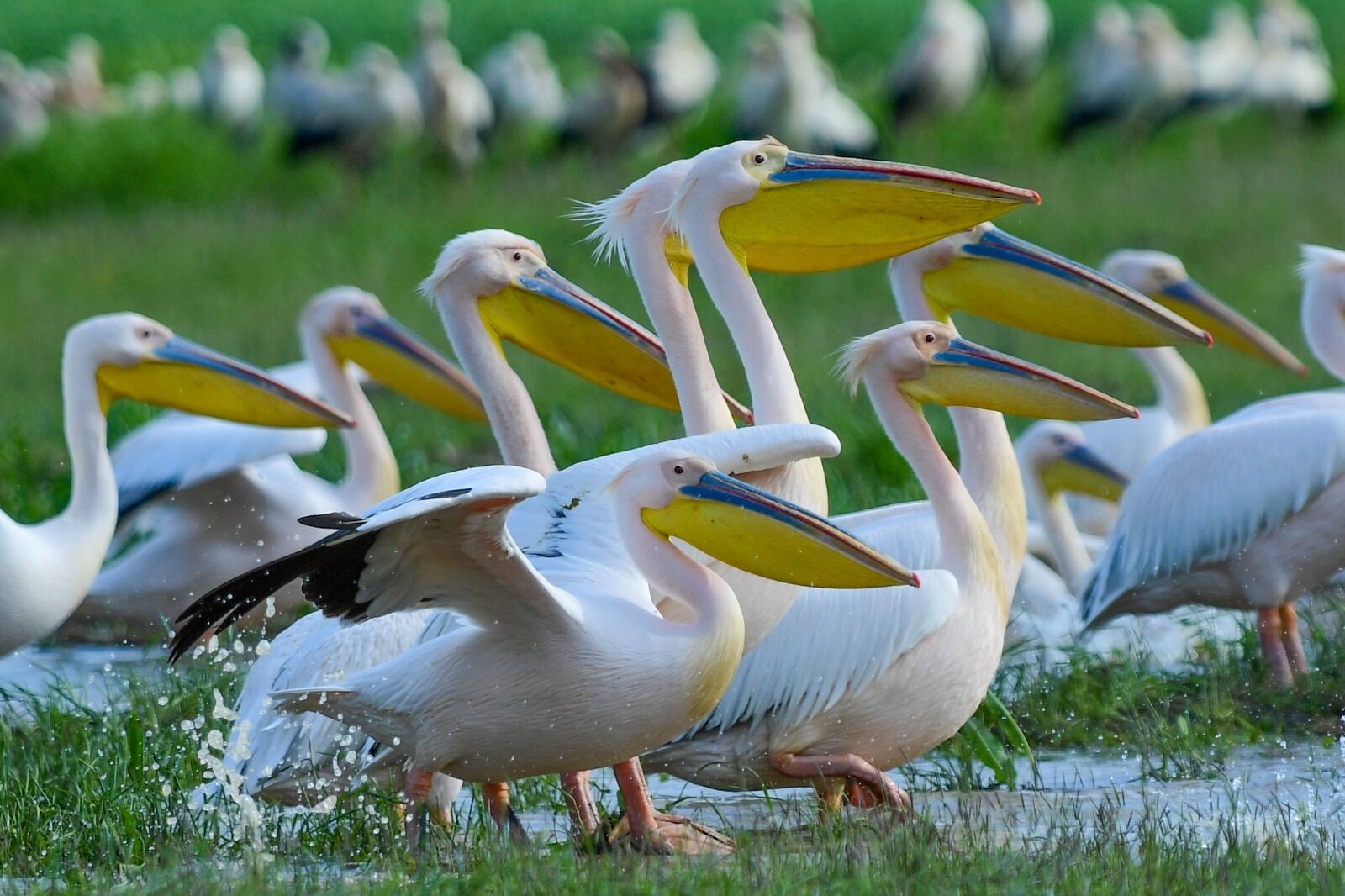 Çekilen karelerde, pelikanların gagalarında belirginleşen sarı, yeşil ve kırmızı renk tonları net bir şekilde belgelendi.