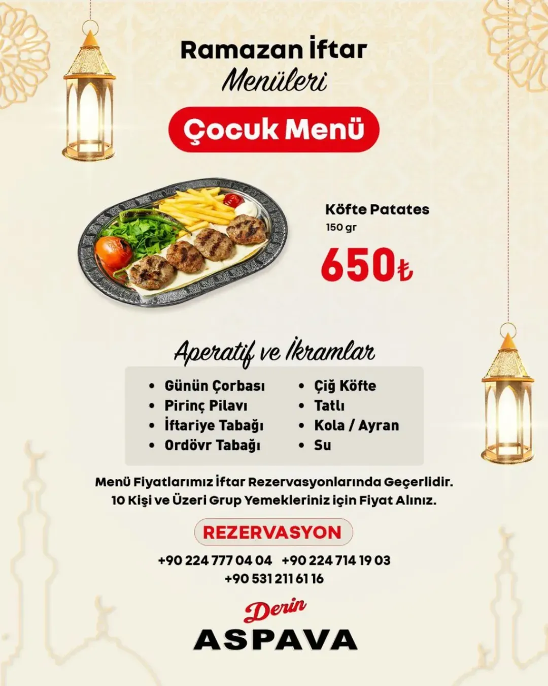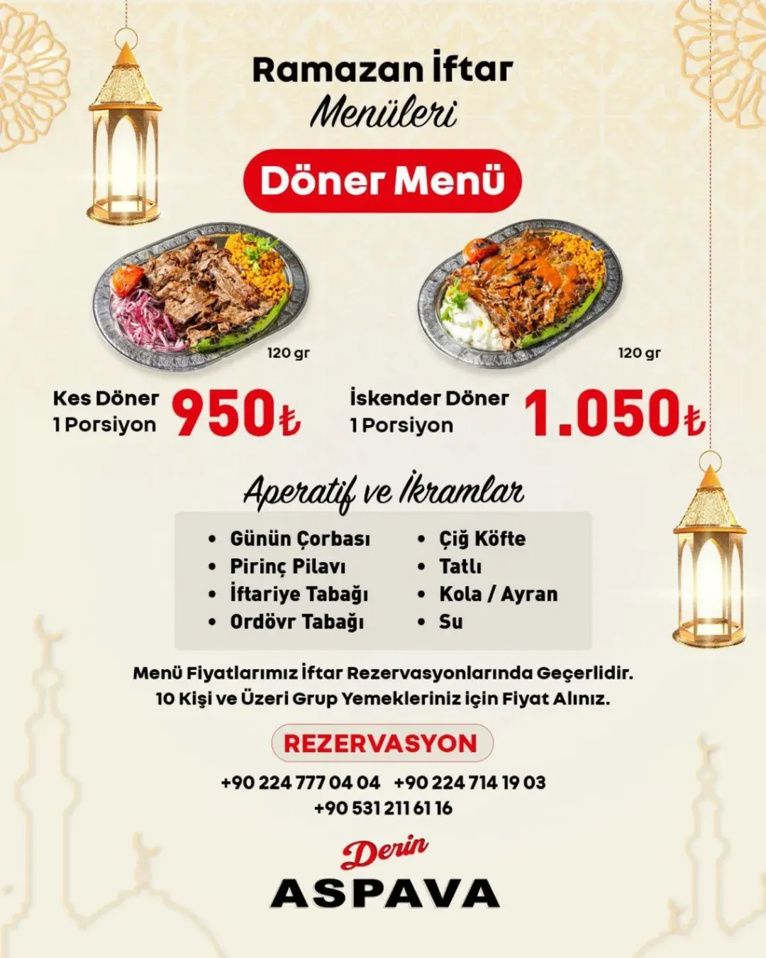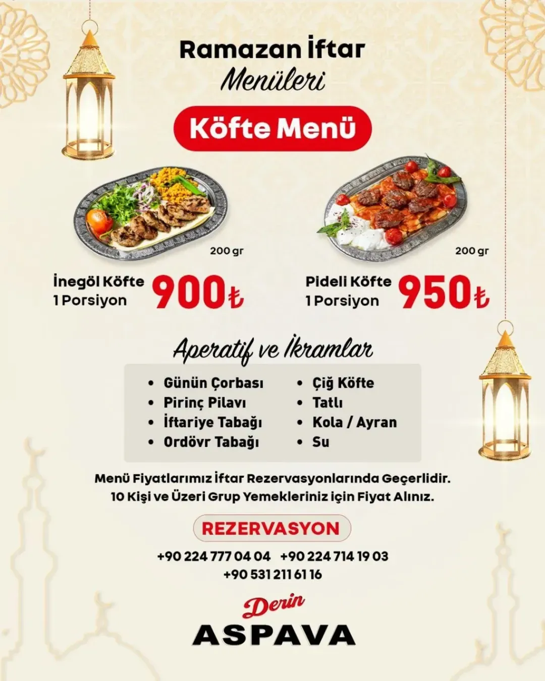 Menü fiyatları iftar rezervasyonlarında geçerlidir.