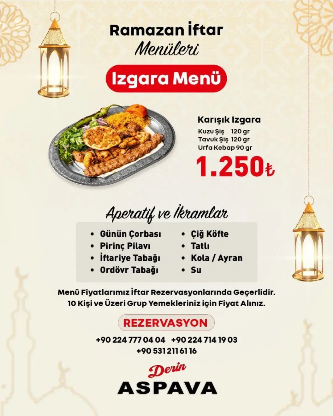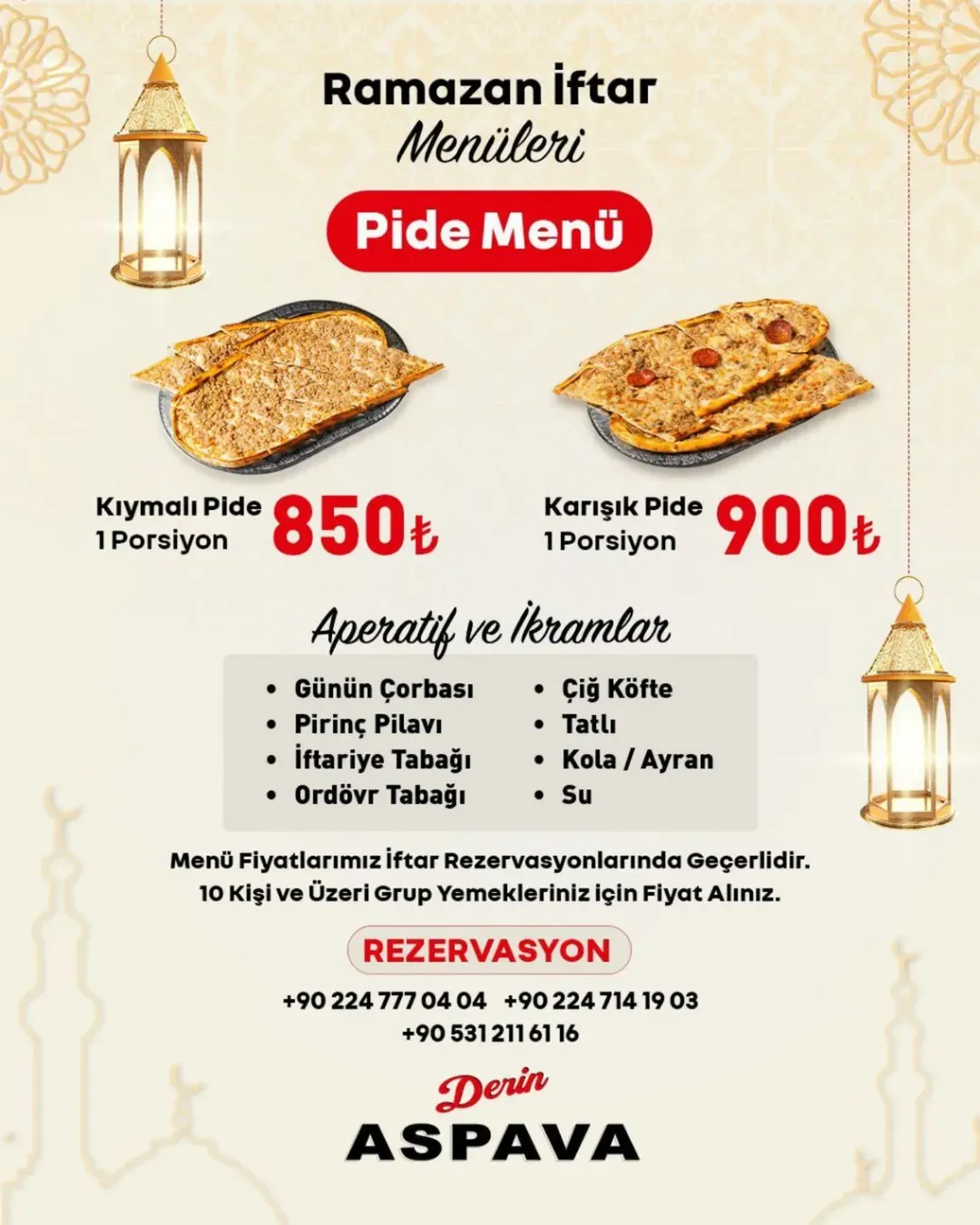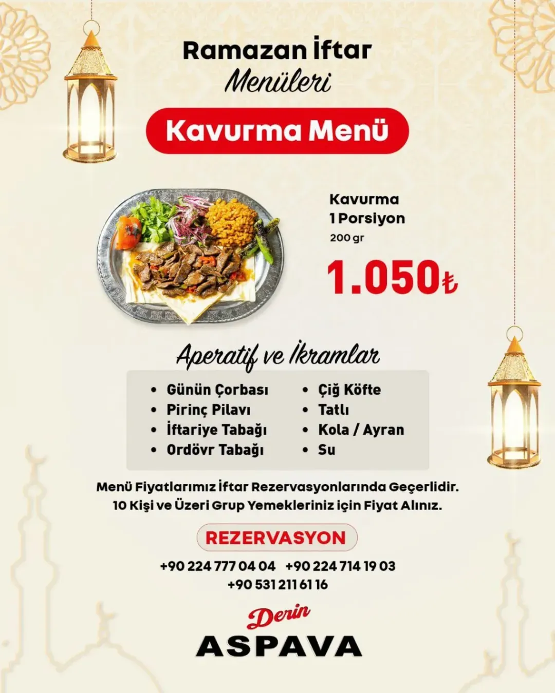 Menü fiyatları iftar rezervasyonlarında geçerlidir.