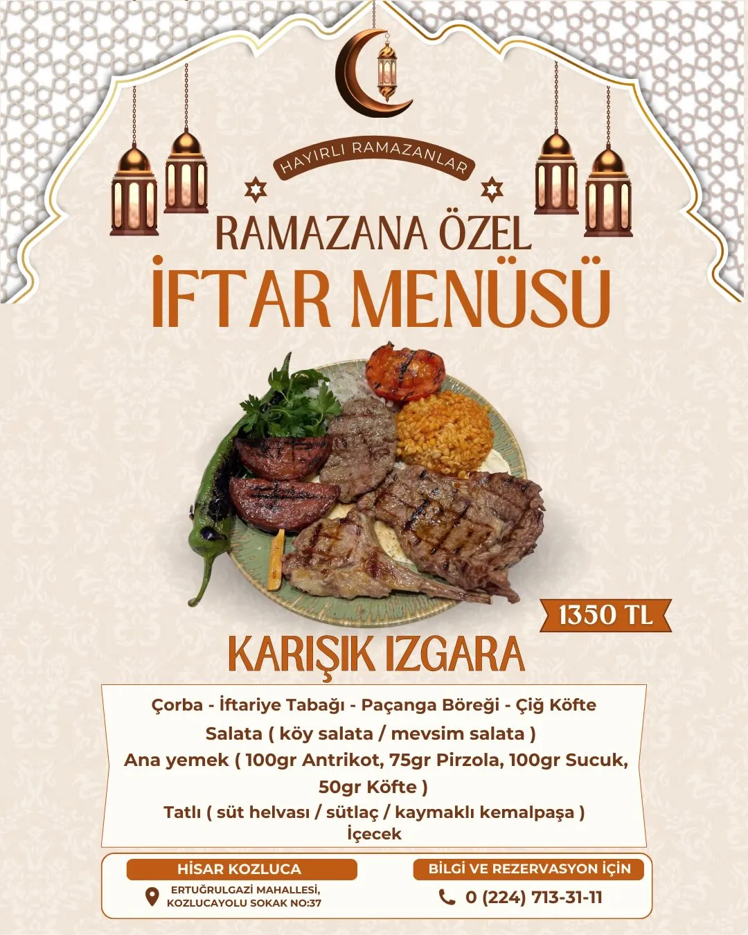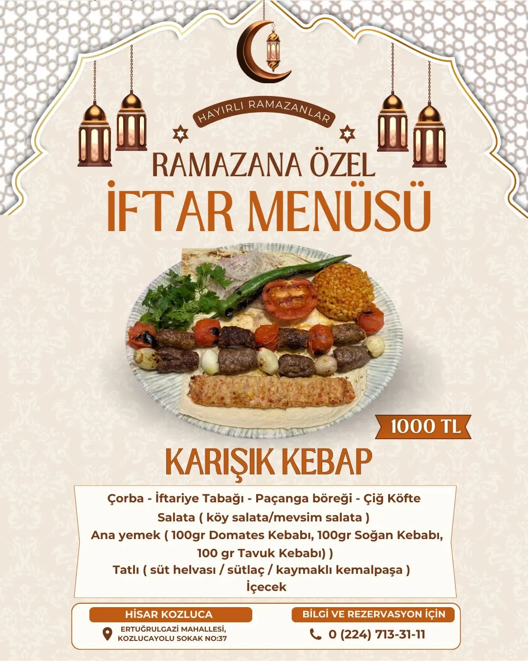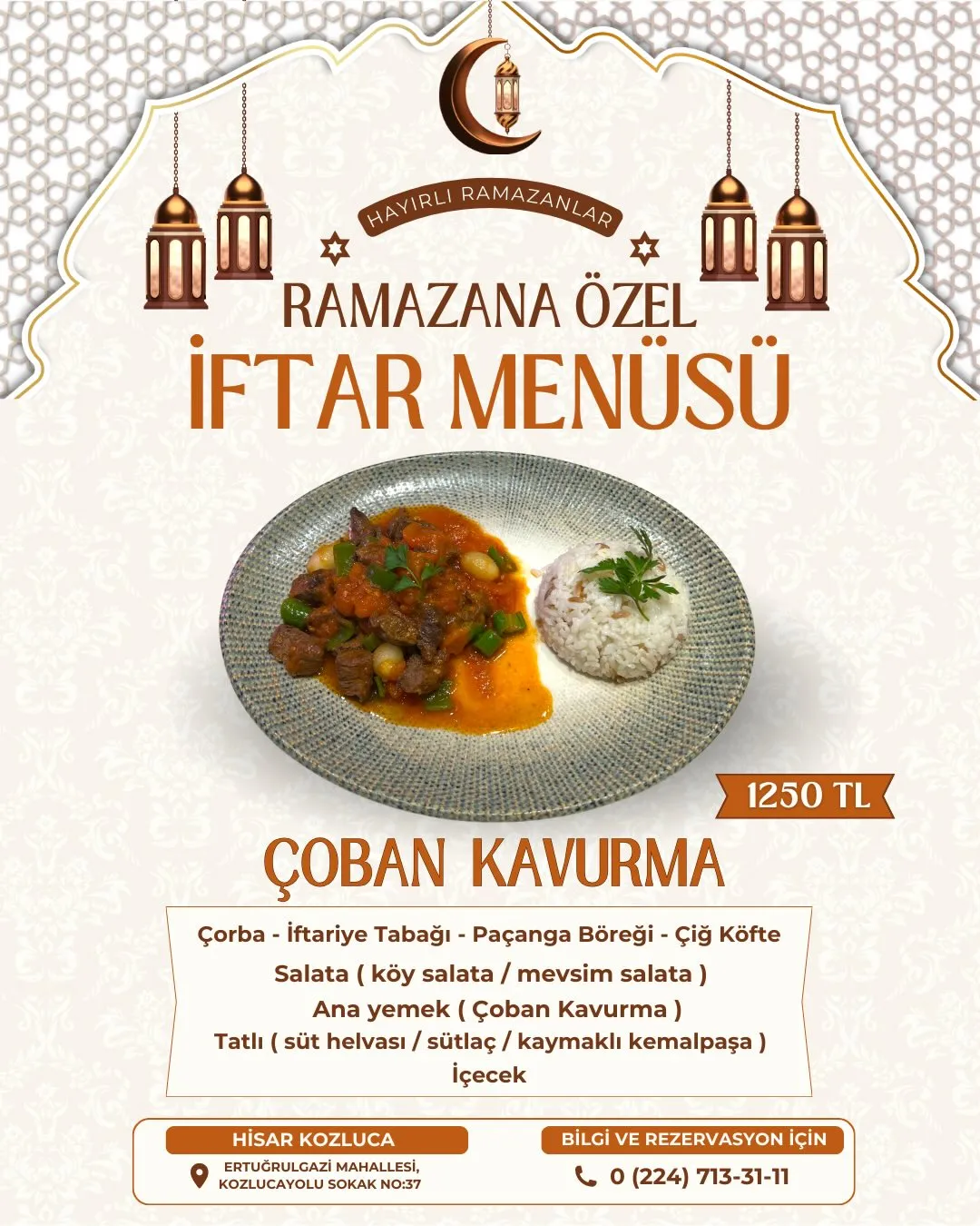 Hisar Kozluca – Ramazana Özel İftar Menüsü 2026