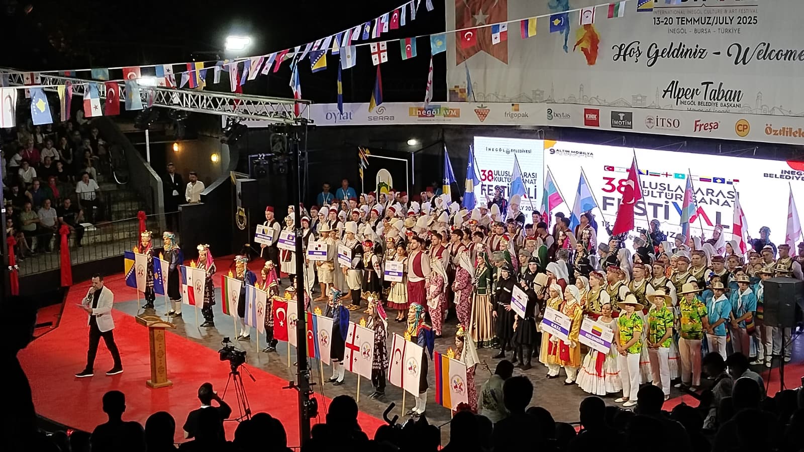 Korteje İnegöl Kaymakamı Eren Arslan, İnegöl Belediye Başkanı Alper Taban, AK Parti İlçe Başkanı Mustafa Durmuş, belediye meclis üyeleri, farklı ülkelerden gelen halk dansları ekipleri ve çok sayıda vatandaş katıldı. Yöresel kıyafetleriyle dans gösterileri sunan ekipler, İnegöllülerden büyük alkış aldı.