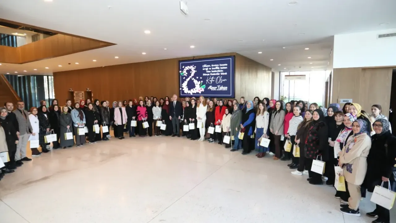Konuşma sonrası Başkan Taban kadın çalışanlara günün anısına hediye takdimi gerçekleştirdi.