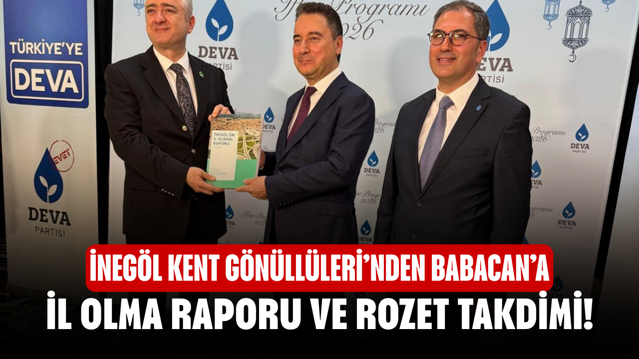 Programda, İnegöl’ün il olma sürecine yönelik çalışmaların ürünü olan İl Olma Platformu raporu ve “İL İNEGÖL” rozeti Ali Babacan’a takdim edildi.