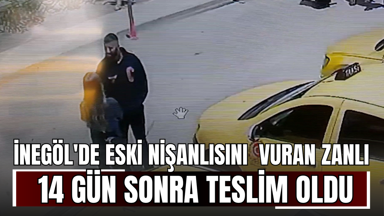İnegöl'de, eski nişanlısını sokakta silahla yaralayan ve 14 gündür firarda olan şüpheli Hakan Mahim, İnegöl Adalet Sarayı’na giderek teslim oldu.