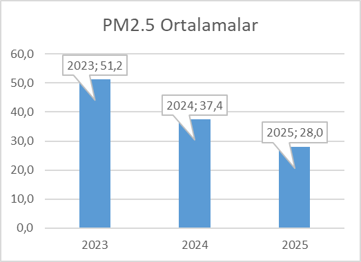 İstasyonlardan elde edilen veriler doğrultusunda yapılan değerlendirmelerde, partikül madde oranlarında belirgin düşüşler yaşandığı açıklandı. Ölçümlere göre PM 2,5 değeri 2023 yılında 51,2 iken, 2024’te 37,4’e, 2025 yılında ise 28 seviyesine geriledi.