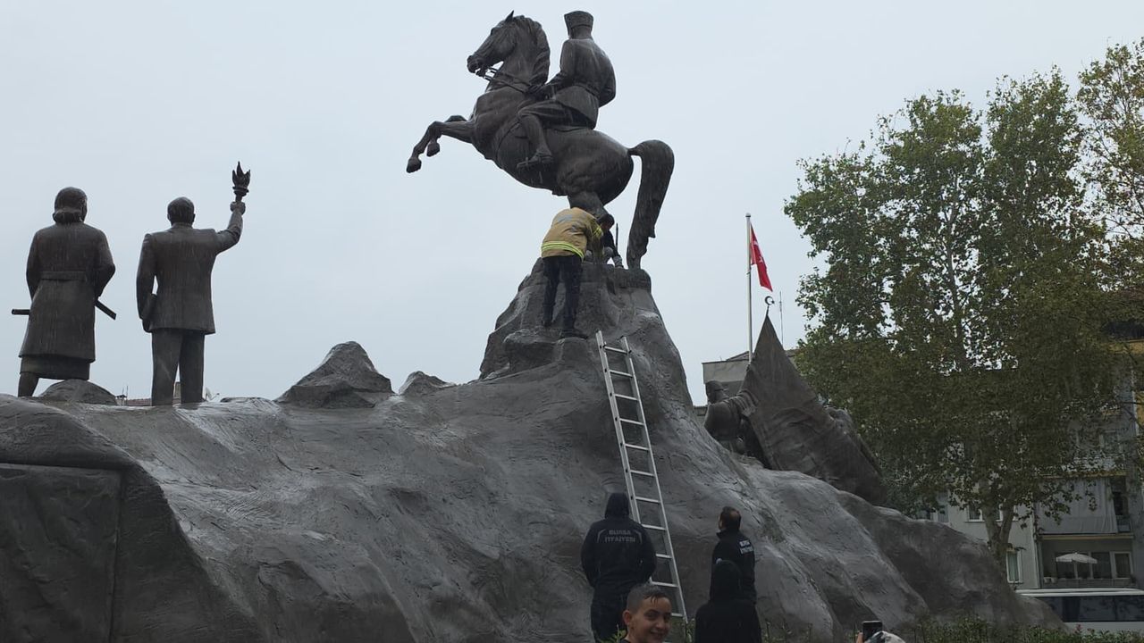 Olay, İnegöl şehir merkezindeki Atatürk Anıtı önünde meydana geldi. Edinilen bilgiye göre arkadaşlarıyla birlikte anıt çevresinde oynayan Yusuf Halil, heykeldeki atın üzerine çıkmak istedi. Yağış nedeniyle zeminin kaygan olması sonucu dengesini kaybeden çocuk, çıktığı yerden inemeyince İnegöl İtfaiyesi’nden yardım istedi.