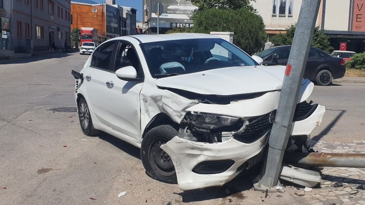 Çarpışmanın etkisiyle savrulan otomobil, yol kenarındaki aydınlatma direğine çarparak durabildi.
