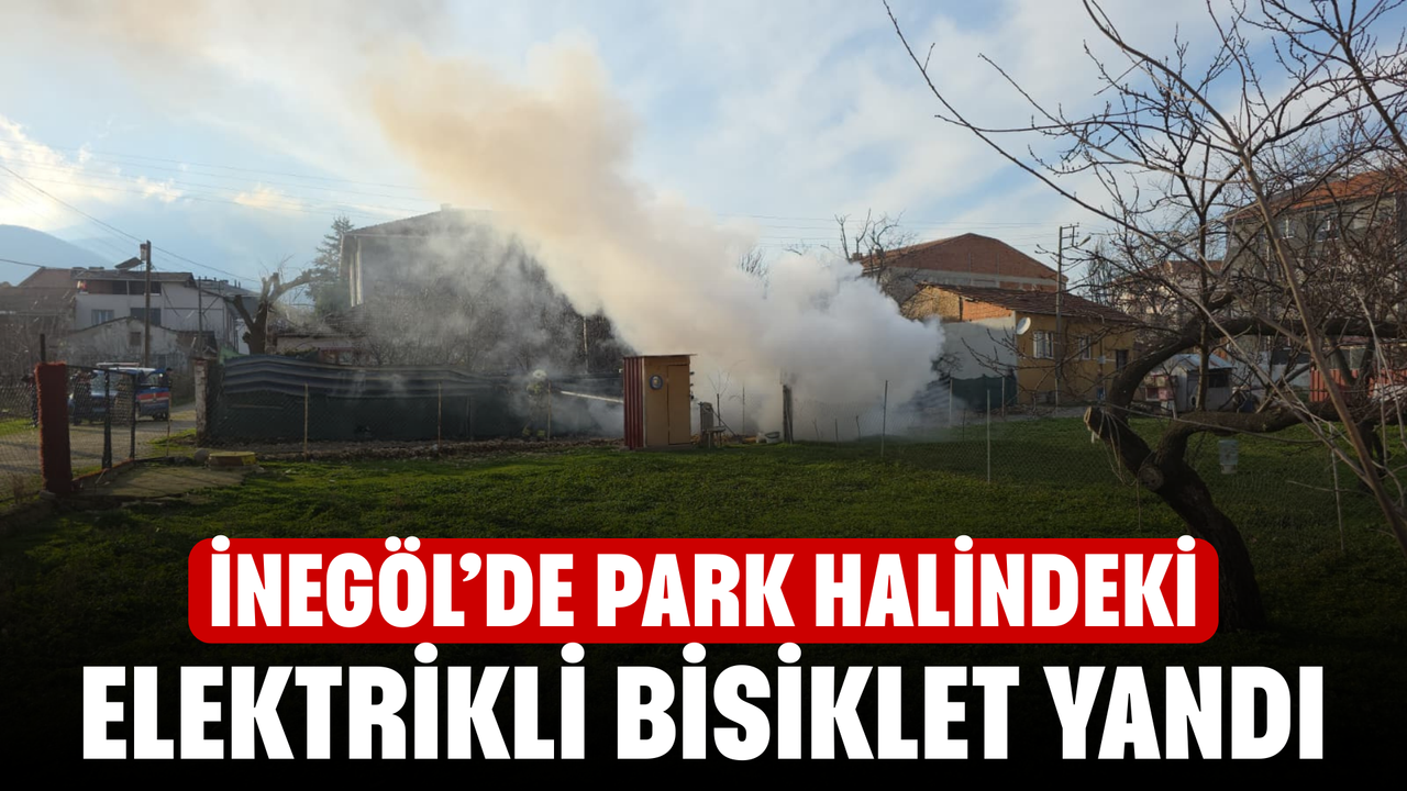 İnegöl'de park halindeki elektrikli bisiklet çıkan yangında kullanılamaz hale geldi.