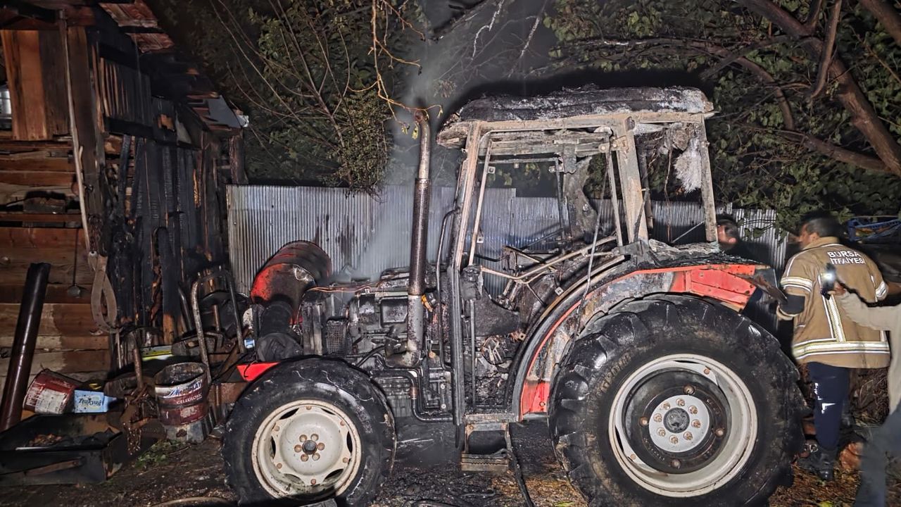 Bursa’nın İnegöl ilçesinde park halindeki bir traktör, elektrik kontağından çıktığı değerlendirilen yangında kullanılamaz hale geldi.