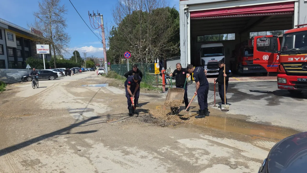 Caddede meydana gelen hasarın sürücüler için tehlike oluşturduğunu fark eden İnegöl İtfaiye Amirliği personeli, belediye ekiplerini beklemek yerine duruma doğrudan müdahale etti. Kendi imkanlarıyla temin ettikleri malzemelerle çalışma başlatan ekipler, çukurları doldurarak yol zeminini düzledi. Müdahale süresince emniyet tedbirleri kapsamında yol kısa süreliğine araç geçişine kapatıldı.