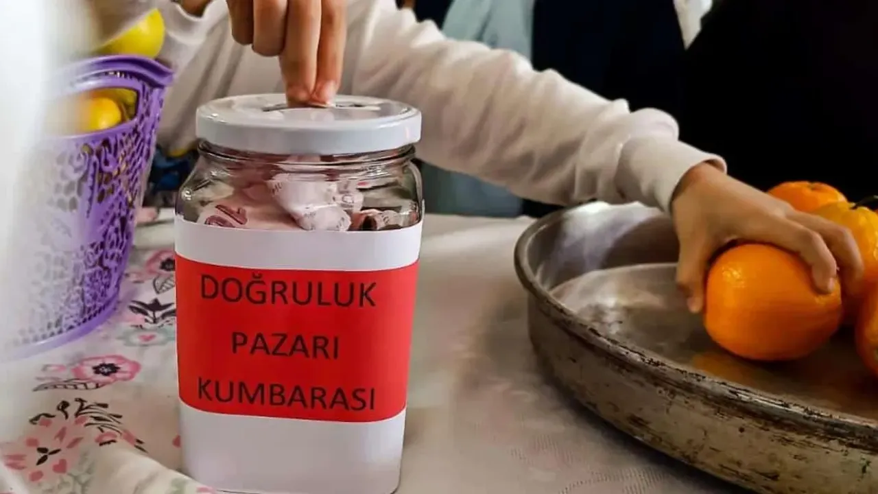 İnegöl TOKİ Mehmet Akif Ersoy İlkokulu'nda öğrencilere dürüstlük kavramını uygulamalı olarak öğretmek amacıyla "Doğruluk Pazarı" isimli bir etkinlik gerçekleştirildi. Değerler Eğitimi programı çerçevesinde kurulan ve başında hiçbir görevlinin yer almadığı meyve standından ürün alan öğrenciler, ödemelerini stant üzerine bırakılan kumbaralara yaptı.
