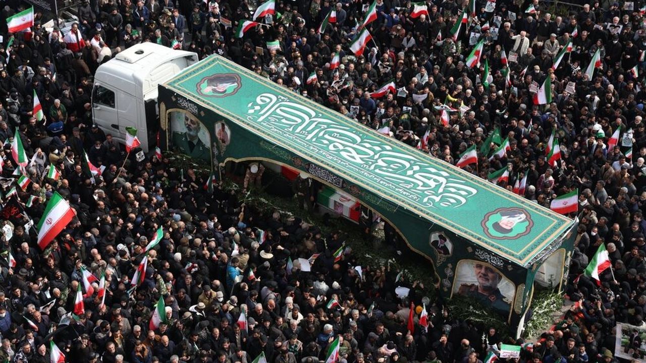 Tören sırasında kalabalığın ABD ve İsrail karşıtı sloganlar attığı görüldü. Katılımcılar, hayatını kaybeden komutanların fotoğraflarını taşıdı.