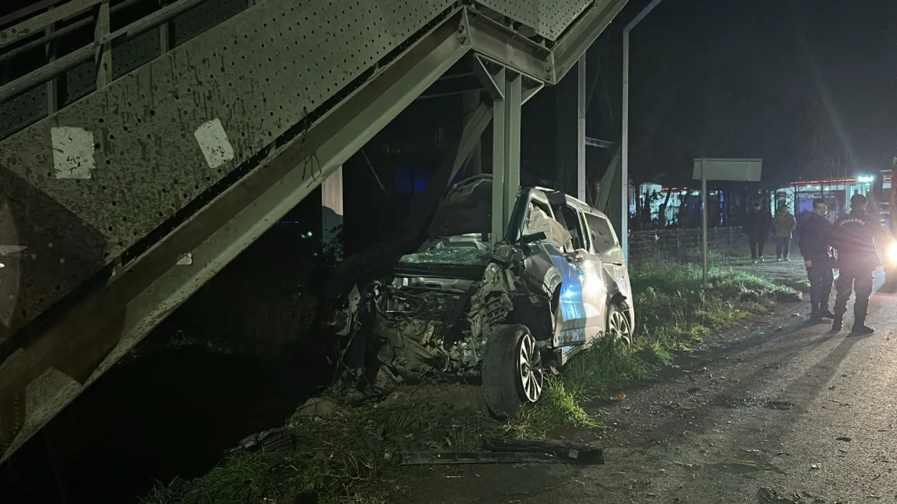 Araç Üst Geçit Ayağına Çarptı