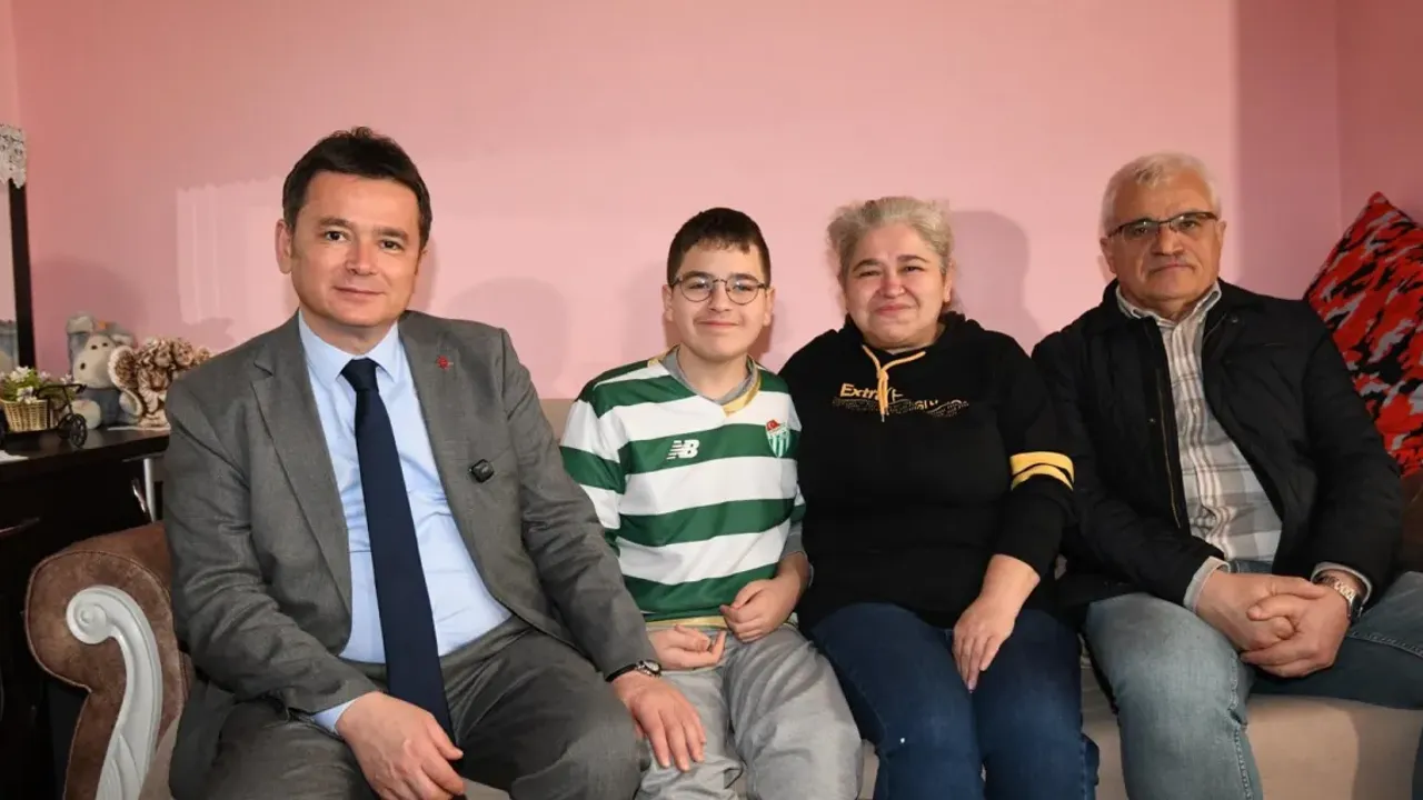 Osmangazi Belediye Başkanı Erkan Aydın, İstiklal Mahallesi'nde yaşayan otizmli Yunus Emre Erdem'in doğum gününü kutlamak için ailesinin evini ziyaret etti. Başkan Aydın, Yunus Emre’ye Bursaspor forması hediye etti.