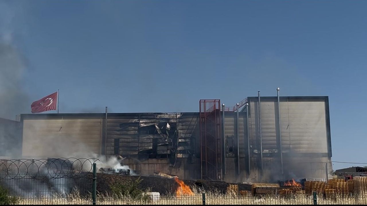 Tekirdağ’ın Çorlu ilçesinde kompozit panel üretimi yapılan bir fabrikanın bahçesindeki paletlerde çıkan yangın, binaya sıçradı.