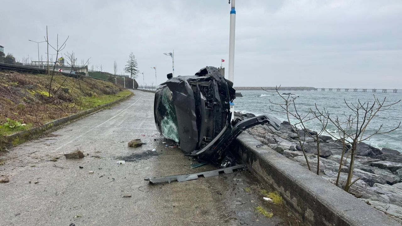 Yoldan aşağı savrulan araç, deniz ile yaya yolunu ayıran beton bariyere çarparak durabildi. Olası bir facia böylece son anda önlendi.