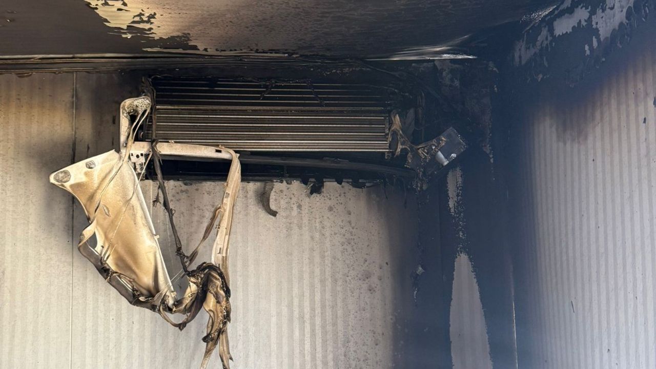 Adıyaman’da üç gün boyunca açık bırakılan bir klima, konteynerde yangına yol açtı.